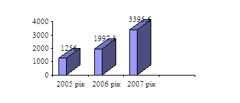 При порівнянні трьох останнього років (2005- 2007) виявлено, що обсяг реалізації збільшився на 70%. Середньорічний темп приросту становить 64%. Для більшої наочності, динаміка реалізації продукції зображена на Плакаті 2.