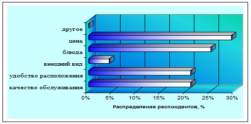 Респондентам предлагался вопрос, что является для них самым главным при выборе кафе. Диаграмма предпочтений потребителей представлена на Рисунке 5.