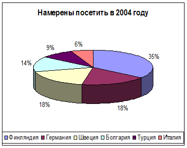 С помощью проведённого исследования в 2005 году любая тур-фирма обратит большее внимание на туры во Францию, Швецию, ОАЭ, Финляндию и Италию и меньшее в остальные страны (см. ПРИЛОЖЕНИЕ 3).