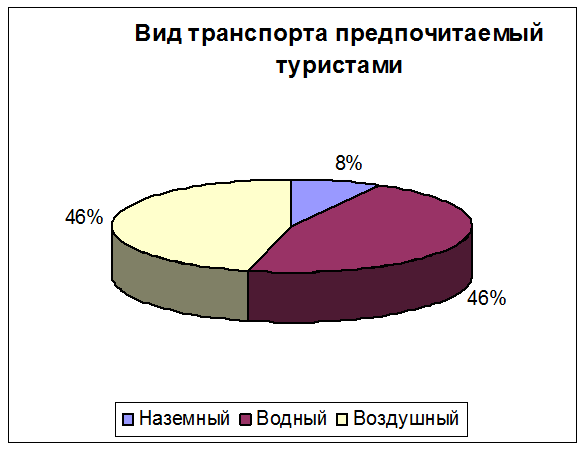Также по данным исследования видно, что необходимо развивать туры на воздушном и водном транспорте и организовывать круизы. А так как наземный транспорт мало предпочтителен, то необходимо ограничить туры на наземном транспорте (см. ПРИЛОЖЕНИЕ 4).