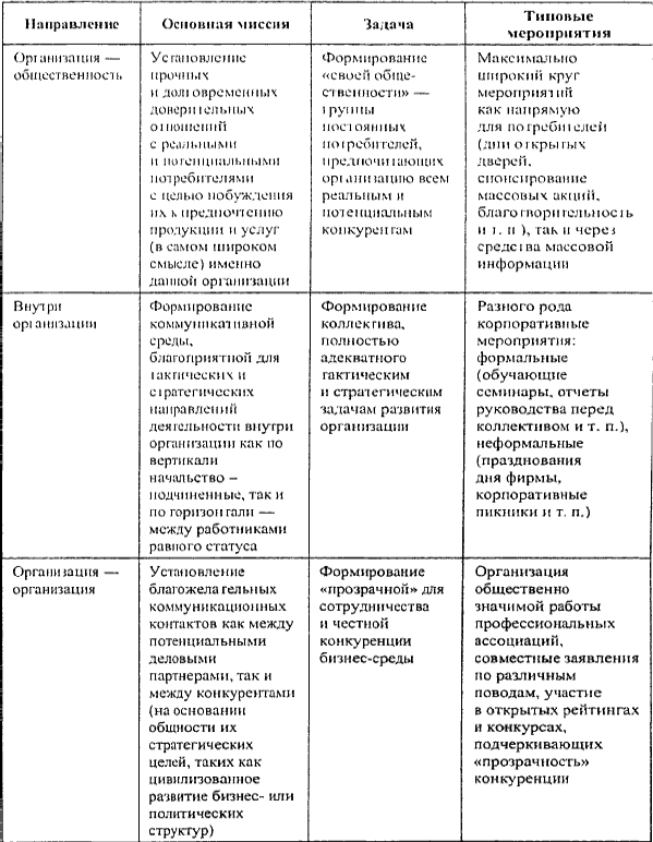 Основные направления деятельности паблик рилейшнз