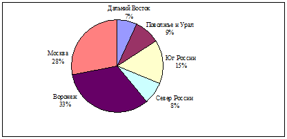 Анализ региональных продаж плитки за 1996-99 годы представлен в Приложении 3. Основная доля продаж приходится на Воронежскую область и в последнее время она увеличивается.