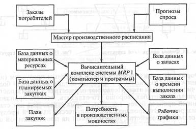 возникла в конце 60-х годов. Она представляет собой определенный алгоритм действий по планированию материальных потоков и позволяет рассчитывать объем и ассортимент требуемых материалов, а также время их производства или поставки. Концепция реализуется через так называемые «толкающие системы».