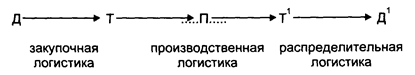 Материальные ресурсы и полуфабрикаты «выталкиваются» из одного звена производственной логистической системы в другое. Аналогично готовая продукция «выталкивается» в дистрибьюторную сеть (рис. 1).