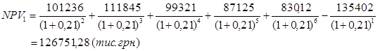 Грошовий потік за роками наведений в таблиці 8.1. Ставка дисконтування ― 21%.