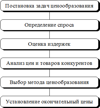 Таким образом, ценообразование существенно отличается на различных типах рынков. Фирмам необходимо иметь методику расчета исходных цен на свои товары. Ф. Котлер в работе «Основы маркетинга» [2] рассматривает методику расчета цен, состоящую из следующих этапов:
