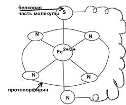 Входит в состав ферментов цитохромов, каталазы, пероксидазы.