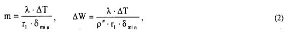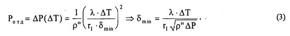 Будем считать, что толщина теплового пограничного слоя d в лавинообразном процессе уменьшается до dmin такого, при котором избыточное давление пара над перегретой жидкостью DP (DT ) уравновешивается средним давлением отдачи пара РОТд. Давление отдачи можно вычислить из закона сохранения импульса