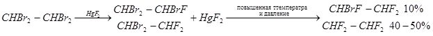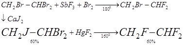 этана получают фторированием соответствующих хлоридов или бромидов, а также присоединением фтористого водорода к хлорированным этиленам: