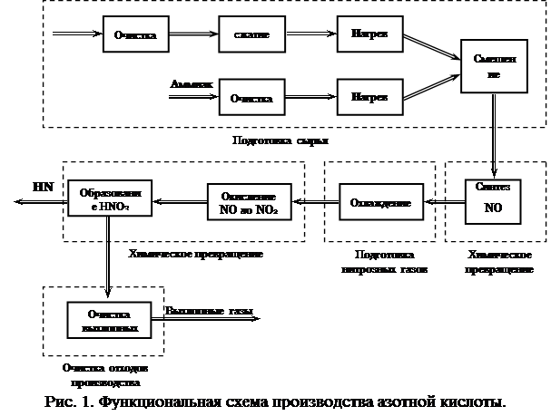 Процесс производства разбавленной азотной кислоты складывается из трех стадий: