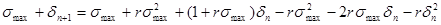 б) Исследуем теперь устойчивость второй точки равновесия: . Здесь также дадим малое приращение к точке равновесия, т.е. рассмотрим значение и исследуем динамику этого состояния с течением времени n. Из (25) получаем: