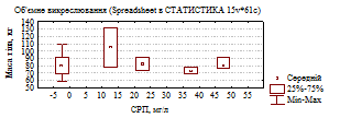 1. У 20% літніх хворих на ХСН при ФВ >45% виявлено достовірне збільшення рівня СРП в залежності як від ФК, так і віку хворих (особливо в більш старших вікових групах). Між толерантністю до фізичного навантаження (тест з 6-ти хвилинною ходьбою) і рівнем СРП зареєстрований негативний кореляційний зв'язок з тенденцією до його збільшення від II до III ФК (r= -0,25; р<0,05; r= -0,36; р<0,05).