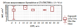 5. У літніх хворих на ХСН як при зниженні маси тіла, так і при її підвищенні виявлено збільшення показника СРП. Визначено погіршення ендотеліальної функції зі збільшенням маси тіла. При проведенні кореляційного аналізу між рівнем інсуліну та ІМТ і талією у пацієнтів з ХСН відмічено позитивний кореляційний зв'язок (r= 0,36; р<0,05 і r= 0,38; р<0,01). Збільшення кола талії асоційовано з підвищенням показників ЗХС і ХС ЛПНЩ. Виявлено погіршення показників тесту з 6-ти хвилинною ходьбою зі зниженням як маси тіла, так і ІМТ.