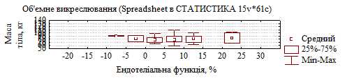 %) розцінювали як ендотелійзалежну вазодилятацію (ЕЗВД) судини, нормою вважалось приріст діаметру артерії на 10% і більше. Нітрогліцерин-індуковане зростання діаметру плечової артерії розглядалось як ендотелійнезалежна вазодилятація (ЕНЗВД) судини з приростом діаметру судини на 20% від початкового (∆d2