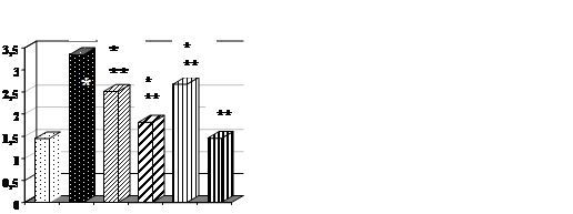 ** - вірогідно відносно групи контрольної патології (р<0,05).