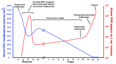 Вирусная нагрузка напрямую связывается со скоростью снижения количества лимфоцитов CD4 и является очень важным прогностическим показателем на ранней стадии заболевания.