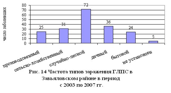 Анализ заболеваемости ГЛПС в Завьяловском районе включает в себя: динамику заболеваемости, зависимость от залесения территории, наличия в Муниципальных образованиях СНТ, сферу занятости населения в той или иной деятельности, выявление случаев повторяемости типов заражения, возрастнызх групп, распределение заболеваемости по месяцам в течение года и т.д. В ходе работы была дана характеристика физико-географических районов и ландшавтов на территории Завьяловского района, в результате которой были определены факторы заболеваемости.