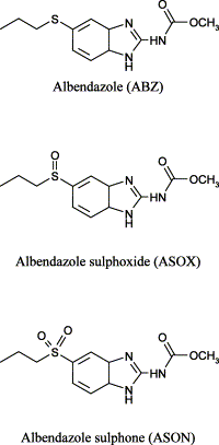Альбендазол відноситься до групи карбаматбензімідазолів. З цієї групи з'єднань синтезований такий широко відомий препарат, як мебендазол, що випускається також під назвою вермокс. Проте Альбендазол значно перевершує мебендазол як по ефективності, так і по широті спектру дії.
