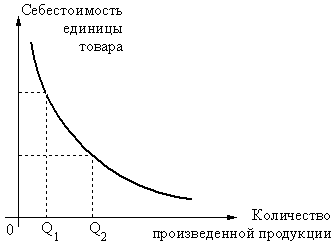 Результатом международного разделения труда и международной производственной кооперации является развитие международного обобществления производства – интернационализация производства. Она экономически выгодна, поскольку, во-первых, позволяет наиболее эффективно использовать ресурсы разных стран, а во-вторых, дает экономию на масштабе. Второй фактор в современных условиях наиболее важен. Дело в том, что высокотехнологичное производство требует высоких начальных инвестиций, которые окупятся, только если производство будет крупномасштабным (рис. 1.1), иначе высокая цена отпугнет покупателя. Поскольку внутренние рынки большинства стран (даже таких гигантов как США) не обеспечивают достаточно высокого спроса, то требующее больших затрат высокотехнологичное производство (автомобиле- и самолетостроение, производство ЭВМ, видеомагнитофонов) становится выгодным лишь при работе не только на внутренний, но и на внешние рынки.