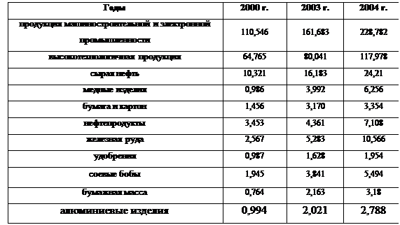 Сейчас КНР поддерживает внешнеэкономические связи более чем с 220 странами (и территориями). Ведущими торговыми партнерами являются Япония, США, страны ЕС, Республика Корея, Австралия, Россия, Канада. Первое место в экспорте КНР занимает продукция машиностроения (85 млрд. долл.), доля которой в объеме достигает 30%. В 2003 г. было экспортировано наукоемкой продукции более чем на 46 млрд. долл. и ее доля в объеме экспорта составила 17,5%. В 2003 г. Китай занял второе место в мире по экспорту угля (более 80 млн. т.).