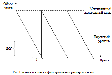 Графическая иллюстрация системы поставок с фиксированным размером заказа приведена на рис.