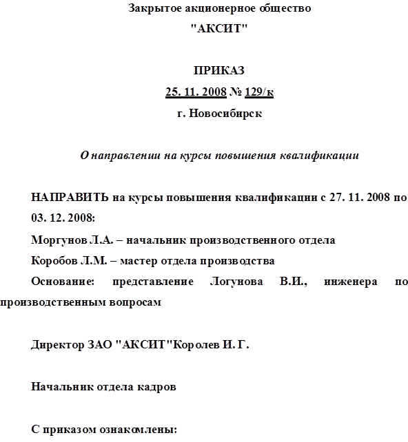 Отправить на курсы повышения квалификации на период установленный организацией проводящей курсы повышения квалификации |