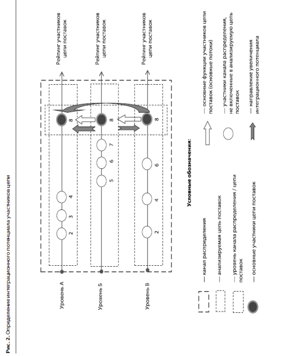Так, из рис. 2 и таблицы видно, что наибольшим интеграционным потенциалом обладает участник анализируемой цепи поставок, функционирующий в уровне А, наименьшим интеграционным потенциалом — участник уровня Б (коэффициенты вариации соответственно 0,53 и 0,17).