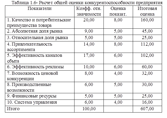 4) Главные факторы успешной конкуренции на рынке. Для анализа этой группы параметров используются следующие данные: государственное регулирование конкуренции; государственное регулирование производства товаров и услуг; агрессивность ведущих конкурентов; конкуренция зарубежных фирм; интенсивность торговой рекламы; послепродажное обслуживание; сравнительные оценки потенциальных факторов успеха предприятия в отношении к ведущим конкурентам по таким показателям, как финансовая мощь, рыночная позиция (доля на рынке, сбытовая сеть, сеть послепродажного обслуживания), производственные возможности (технология, мощности по отношению к рыночной доле, доступность сырья, материалов, модели продукции), система управления.