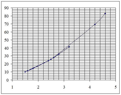 2.2 Рассчитать значения и отобразить на графике функцию y = f(x) по данным приведенным ниже. Где а = 0,7; b = 3,6. Подставляя значения в формулу получаем следующие значения. По полученным значениям строим график.