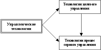 Управленческие технологии имеют двухъярусную структуру: технологии целевого управления и технологии процессорного управления.