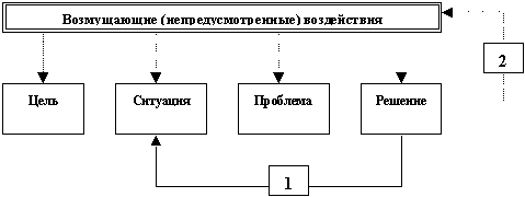 Технологии целевого управления (ТЦУ) определяют набор технологий процессорного управления (ТПУ). Таким образом, руководитель должен сначала определиться с выбором конкретной технологии целевого управления, а затем в качестве инструментария использовать соответствующий ей набор процессорных технологий. ТЦУ – это технологии, основанные на приоритете целей над ситуациями. ТЦУ ориентирует управленческую деятельность на достижение цели: решение должно быть направлено на изменение ситуации, а не на устранение возмущающих воздействий (см. рис.2).
