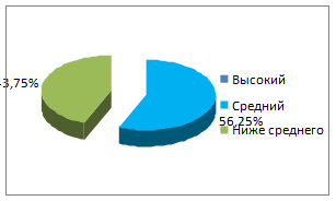 На констатирующем эксперименте мы выявляли у детей физическую подготовленность по количественным и качественным показателям. Результаты данного эксперимента показали следующее: с высоким уровнем физической подготовленности детей не оказалось, со средним уровнем 9, с уровнем ниже среднего – 7 детей.