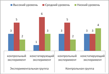 Таким образом, анализируя данные констатирующего этапа эксперимента можно сделать вывод