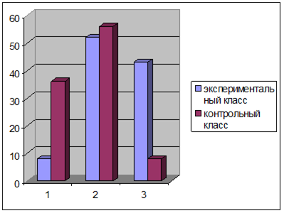 Диаграмма результатов среза в контрольном и экспериментальном классе