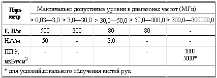 Таблица 5 Максимальные ПДУ напряженности и плотности потока энергии ЭМП диапазона частот > 30 кГц—300 ГТц