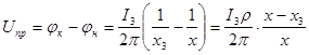 где - ток, стекающий с заземлителя в грунт; - площадь поверхности полусферы радиусом х
