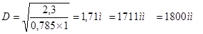 5. Из рекомендованного соотношения площадей выходного и входного патрубков = 1,7 находим площадь выходного патрубка: