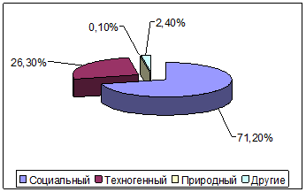 самовозгорание предметов и материалов, разряды молнии. Разделение по данным факторам приведено в табл. 4.1.2. и на рис. 4.1.5., 4.1.6..