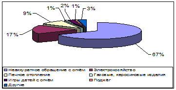 На протяжении последних лет причины возникновения пожаров остаются прежними. Постоянно растет количество пожаров, возникающих вследствие небрежного обращения с огнем, больше половины (57,5%) пожаров и возгораний случается именно по этой причине. Этому, прежде всего, способствует сложная социально-экономическая обстановка в государстве.