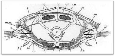 с.с - спинной сосуд щ.м - щупальце медиальное