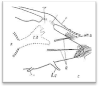 б.с. - брюшной сосуд л.г - лобный гребень