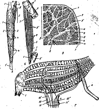 внутренний перимизий; 9 — эндомизий; 9'— мышечные волокна; 10, 10', 10" —