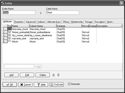 Каждой воинской части придана боевая и транспортная техника: БМП, тягачи, автотранспорт и пр. и вооружение: карабины, автоматическое оружие, артиллерия, ракетное вооружение и т.д. Каждая из перечисленных категорий боевой техники и вооружения также имеет специфические, присущие только ей атрибуты и по каждой категории может быть несколько видов техники и вооружения. Инфраструктура военной части представлена набором сооружений (сооружение ©1, сооружение ©2 . . .), некоторые из которых предназначены для дислокации подразделений части.