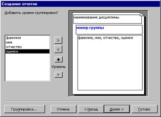 В следующем окне определим уровень группировки по группе (Рис. 51).