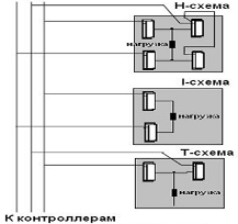 Рисунок 4 – Различные схемы подключения выходных модулей подсистемы ввода вывода GMR
