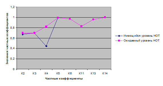 В таблице 2.13 представлены числовые значения данных частных коэффициентов для имеющегося и ожидаемого уровня НОТ в ЧГПТ.