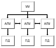 Бесспорными представителями класса SIMD считаются матрицы процессоров: ILLIAC IV, ICL DAP, Goodyear Aerospace MPP, Connection Machine 1 и т.п. В таких системах единое управляющее устройство контролирует множество процессорных элементов. Каждый процессорный элемент получает от устройства управления в каждый фиксированный момент времени одинаковую команду и выполняет ее над своими локальными данными. Для классических процессорных матриц никаких вопросов не возникает, однако в этот же класс можно включить и векторно-конвейерные машины, например, CRAY-1. В этом случае каждый элемент вектора надо рассматривать как отдельный элемент потока данных.