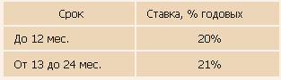 Процентная ставка: 21% годовых