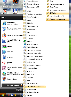 Внешний вид изменился, немного, но изменился. Например, кнопка «Пуск» теперь больше обычной и при нажимании появляется «двухстворчатое» меню. Слева располагаются наиболее часто используемые программы, а справа «полный» список всего остального.