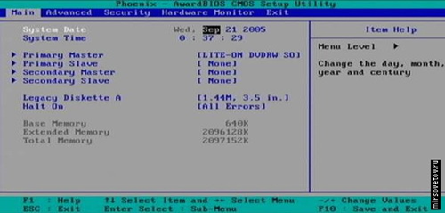 Virus Check Reminder - (напоминание о проверке системы на вирус). Суть данной опции в напоминании пользователю о необходимости антивирусной проверки системы, ее проведении и установке некоторых временных характеристик. Это означает, что на экран монитора в процессе загрузки выводится напоминание, совпадающее с названием опции. Выводится в виде вопроса, на который необходимо ответить. Сама же проверка на вирусы осуществляется с помощью встроенных программных средств. Для ответа возможны два варианта: "Yes" или "No". Если выбрать "No", вопрос-напоминание появится при следующей загрузке. Если выбрать "Yes", то будет произведена антивирусная проверка. Ну а временные характеристики - это и есть значения самой опции. Напоминание о проверке будет выводиться только в те дни, для которых производится дополнительная конфигурация. Конфигурационные значения опции могут быть следующие: